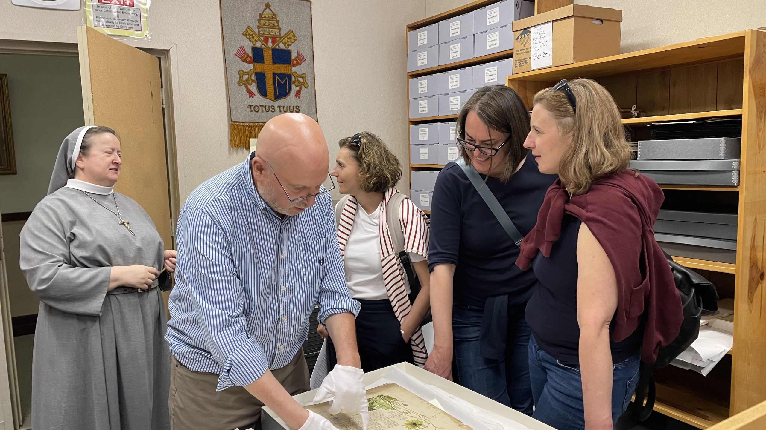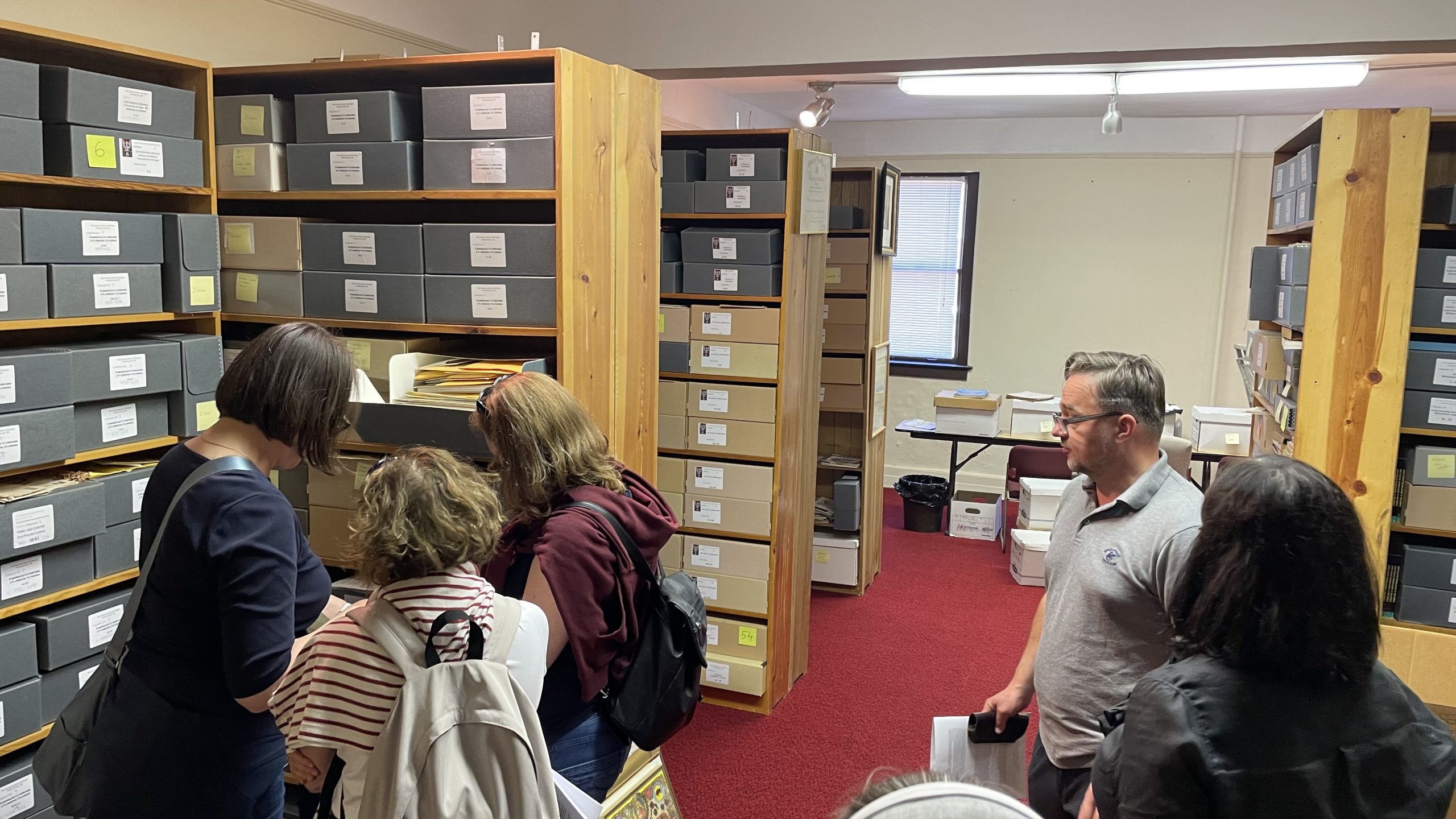 From June 12 to 14, 2024, the Polish Institute of Culture and Research in Orchard Lake hosted distinguished representatives of the Ministry of Culture and National Heritage of the Republic of Poland, Dr. Jolanta Miśkowiec (Director of the Department of Cultural Heritage Abroad and Memorial Sites) and Dr. Aleksandra Figurska (Head of Department). They were accompanied by Dr. Monika Matwiejczuk, Curator and Head of the Collections Department at the Polish History Museum in Warsaw. With these distinguished guests, Dr. Paweł Pietrzyk, Director of the State Archives, also arrived and could feel almost at home in Orchard Lake, as he had visited this place many times over the last 20 years. Initially, it was a working visit to help organize the archives at Orchard Lake, and now he visits Orchard Lake as the Chief Director of the State Archives. The purpose of this visit was to become acquainted with the current state of the archives (including precious works of art) stored in Orchard Lake and to be informed of plans for the future. The host of this visit was Dr. John Radziłowski, the Director of the Polish Institute of Culture & Research at Orchard Lake Schools, accompanied by the PICROL Staff: Anna Bieciuk (Associate Director for Polonia Affairs at PICROL), Sr. Genowefa Potaczała (the Archivist at Orchard Lake), Elijah Majeski (Galeria Manager), Dr. Alicja Kalic (Editor-in-Chief of Polish Media Center) and Mietek Oniśkiewicz (Polish Media Associate).