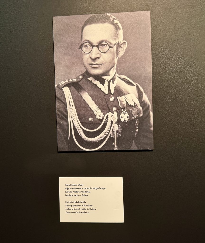 As mentioned before, “Wajda/ W stulecie urodzin/On the centenary of his birth” is a very personal exhibition. Among the artifacts shown are photos of Andrzej and Krystyna at their Żoliborz home, a place where not only people but also animals (dogs, cats and a magpie) were welcome. On March 12, 2007, Andrzej Wajda wrote: “In my old age I would like to be a cat in our house in Żoliborz. This is a refuge for those who fought; ears torn off, bitten, but they escaped with their lives and at the end need some warmth and safety… However, I still will wait a bit …”. There are also photos of young Andrzej, his brother Leszek, and their parents, Aniela and Jakub. Also displayed is his father’s saber. Jakub left this saber with the family before leaving for the September Campaign in 1939, during which he was captured and then like many Polish career officers killed in what is known as the Katyń massacre (he was kept in Starobilsk and killed in Kharkiv.) The Manghha exhibition is partially narrated with quotes from Wajda’s 2013 autobiography “Kino i reszta świata” (“Cinema and the rest of the world”) and with excerpts from his diaries. Among them, a quote about his mother who waited for her husband’s return from the war, even if she knew that most likely he was killed: “My mother died waiting for my father, although she knew he would not come back. This story requires a special form which conveys the mystery of waiting.” This “special form” came to Wajda when he decided to make the film “Katyń” as a tribute to both the men shot by the Soviet NKVD and to their families, especially to the women who first waited for them, and then for the truth about their demise, and finally, justice.