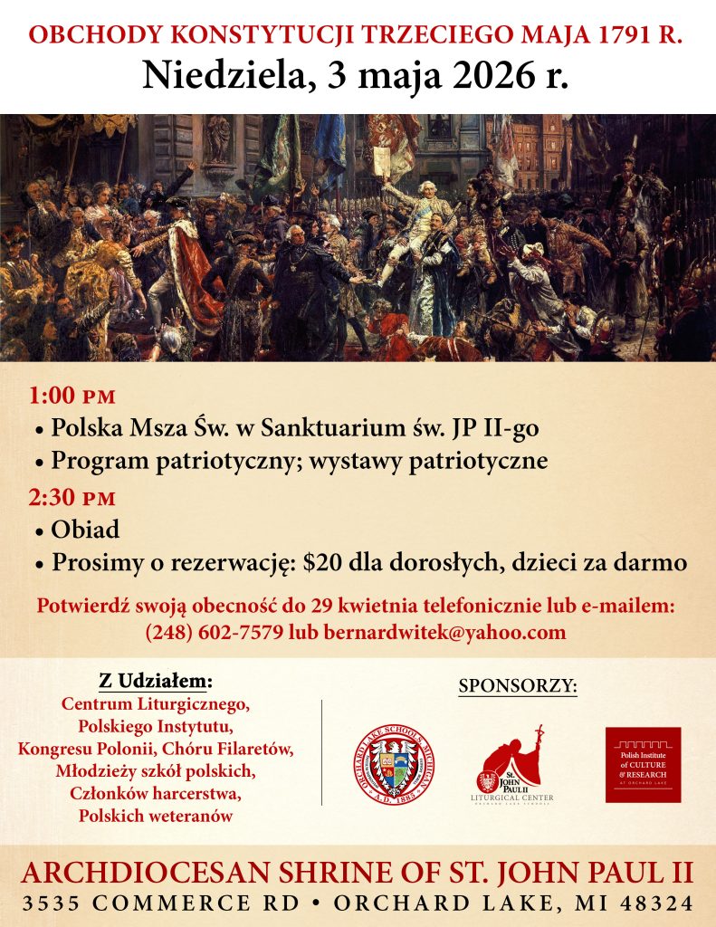 Zapraszamy na obchody Święta Konstytucji 3 Maja do Orchard Lake